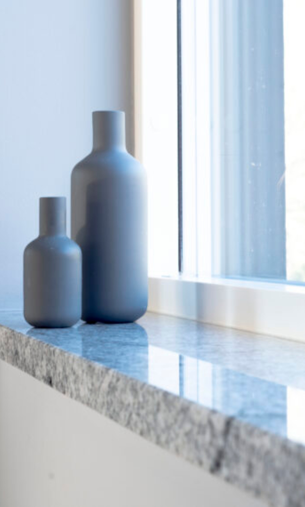 Alla våra fönsterbänkar tillverkas efter exakta mätningar. Vi mäter upp dina fönster och tillverkar fönsterbänkarna i exakt rätt storlek. Vi erbjuder olika tjocklekar, kantprofiler och ytor — polerad, finslipad eller annan finish.